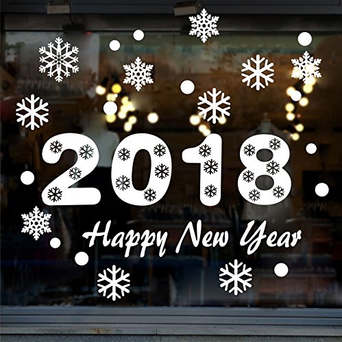 Christmas White Snowflakes Window Stickers,Kalolary 2018 Happy New Year Merry Christmas Wallpaper Window Home Shop Art Mural Decor Stickers (2018 Stickers)