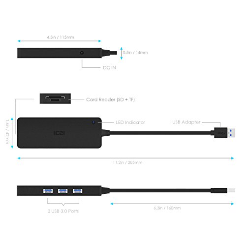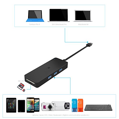 -. Binding : Personal Computers -. Brand : ICZI -. EAN : 0713869051532 -. Feature : Multi-Functional USB Hub: Add 3 USB ports for your device. Meet various needs for USB 3.0 port at the same time. / Card Reader Function: With the built on TF/SD Card reader slots, effectively reduce extra USB card reader requires on USB port. / High Speed Data Transferring: The data transfer speed of USB 3.0 Ports up to 5Gbps (10 times faster than USB 2.0). / Compatible Devices: Most suitable for Surface 3/ Surface Pro3/Pro 4/ New Surface 2017 which only has one usb 3.0 port. Also work well for HP/ASUS Notebook, Macbook and more. / Space Saving: Compact and slim design effectively saves your desk space and expands your connectivity. -. Label : ICZI -. Manufacturer : ICZI -. Model : IZEC-A67 -. MPN : 02-RT -. PackageQuantity : 1 -. PartNumber : 02-RT -. ProductGroup : PC Accessory -. ProductTypeName : MEMORY_READER -. Publisher : ICZI -. Studio : ICZI -. Title : ICZI USB 3.0 HUB with 3 USB Ports and SD/TF Card Reader Slot for PCs and Laptops -. UPC : 713869051532