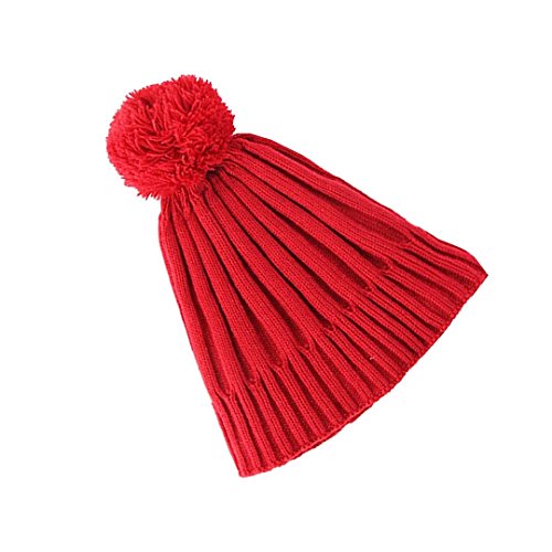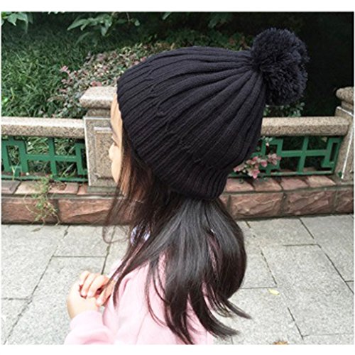 Toddler Boys Girls Winter Warm Fleece Solid Knit Hat Skull Pom Beanie