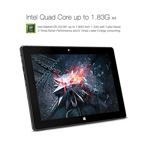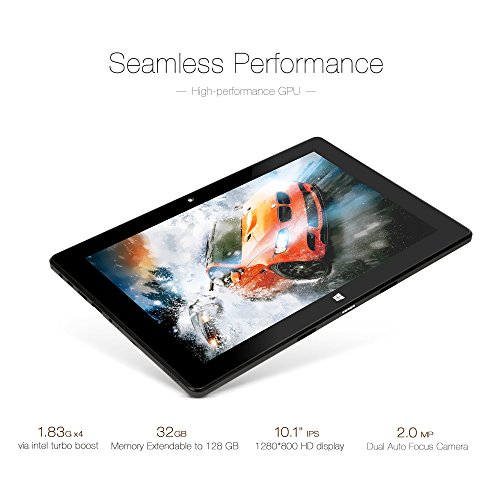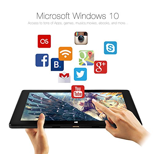 - Feature : 10.1 inch IPS Touch Screen; 1280x800 resolution / Microsoft Windows 10 operating system;Intel Baytrail-CR Quad Core Processor (up to 1.83GHz with Turbo Boost) / 2 GB RAM + 32GB Flash (expandable to 128GB with Micro SD card) / Dual Cameras 2.0MP/2.0MP, Bluetooth 4.0 and HDMI, 7000 mAh Battery / Includes Office 365, 1TB OneDrive Cloud Storage, 60 free Skype minutes for a month