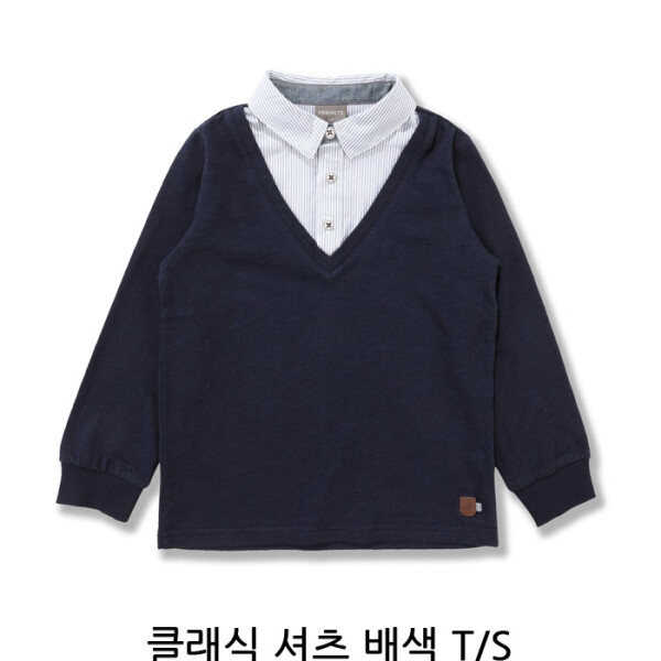 클레식한 감성의 멋스러운 남아티셔츠입니다.셔츠를 레이어드한듯한 디자인으로 깔끔한 면팬츠나 데님팬츠에멋스럽게 코디가능한 아이템입니다.