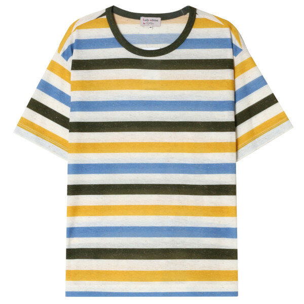 [탑텐] 여성 리넨블랜디드 멀티스트라이프 프린트 반팔티(MSY2TS2033)
