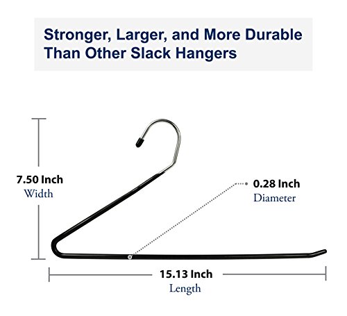 -. Feature : PREMIUM GRADE - Premium Grade Stainless Steel with eco-friendly black rubber paint coating. / HEAVY DUTY - Extra durable with 0.5 cm diameter design. Superior size of 15.13 inch length and 7.5 inch height, fitting most pant sizes. No deformation with multiple pants on a single hanger. / SPACE-SAVER - Maximize storage room in your closet. Hanger dimension: 15.13"L x 7.50"W x 0.2"D (38.1x19.1x0.5cm) / SMOOTH SURFACE AND FINISH - This Open-ended Hanger boasts a smooth finish while keeping creases from leaving on your pants, slacks, trousers or jeans. Also suitable for hanging delicate clothing like scarves, ties or towels. No-slip bar for pants hangers. Fits standard closet rails. / CONVENIENT OPEN-ENDED DESIGN - Easily get pants out of the closet in a hurry without even having to remove the hangers