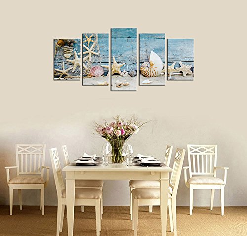 Blue Canvas Art Shells Starfishes Poster Prints Vintage Look for Wall DecorIntroduction: