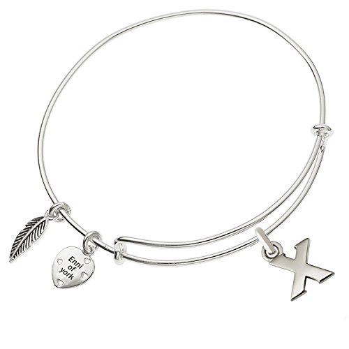 Enni of York Initial Letter Ani-Silver Expandible Wire Alphabet Bangle Bracelet