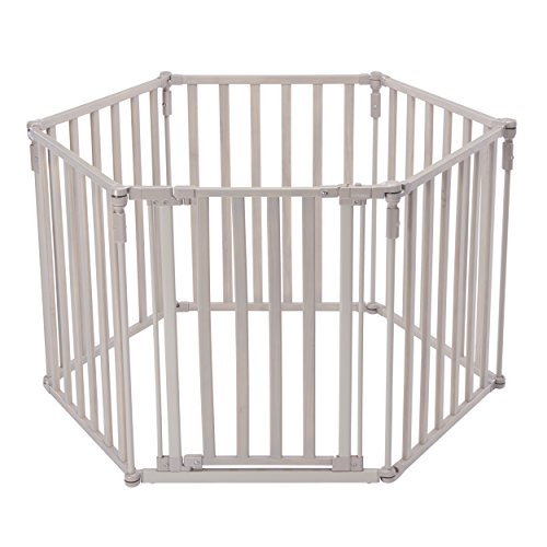 -. Title : North States Industries Superyard 3 in 1 Extra Wide Gated Wood Barrier, Light Grey, 151" wide