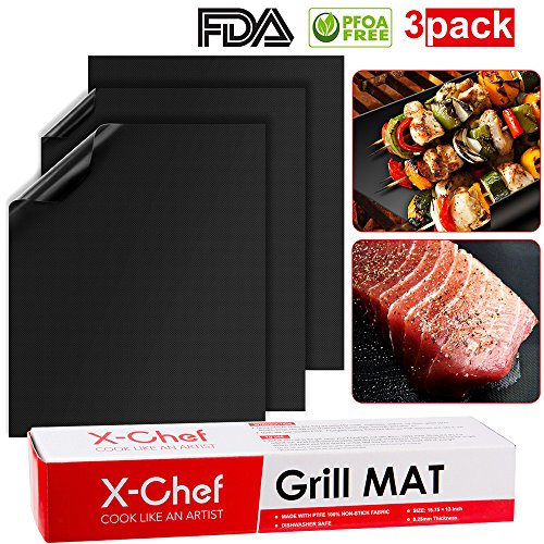 Grilling Mat, X-Chef Set of 3 Non-Stick BBQ Grill Mat, Heavy Duty and Dishwasher Safe, Work on Electric and Gas Grill, FDA Approved, Black