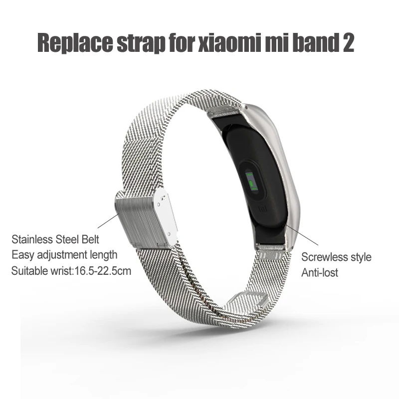 Screwless Stainless Steel Bracelet:MiBand 2 Wristbands Replace Wrist strap