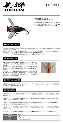 할리 세미나를 테마로 한 트라우트-송어용 톱 워터 플러그! ●배면 설치 가동 윙 등에 마리의 개폐 지점을 가지는 구조에,외형도 리얼에 포즈시의 실루엣도 위화감을 주지 않는 포름이 수면 아래의 트라우트-송어로 실루엣에서도 어필.특수 형상의 윙은 캐스트시에 바디를 따라서 두방향으로 윙을 닫아 공기 저항을 경감.경량 웨이트이면서도 비거리를 벌어 나와 하고 있습니다. 특수 형상의 윙은 착수후에 수의 저항을 받는 바와 같이(하도록) 설계되어 있습니다. 저항을 받고 연 윙은 수 잡도 좋고, 슬로우 re tree《부》에서도 제대로《기》《레》가 있는 타이트《웃부린구아쿠숀》를 수면에서 일으키고, 당김파를 발생시킵니다.●텅스텐 웨이트 탑재 소형 경량으로 공기 저항을 받기 쉬운 형상이면서도,텅스텐 웨이트를 사용 하는 것으로 캐스트시의 비거리 업과 안정 한 비행 자세를 서랍(인출) 있습니다.●절묘의크기매칭 할리 세미나의 전장은 32~37mm정도라고 하고, 《에조하루제미》는 그것보다(부터)도 약간 크다크기.미매미의 38mm이라고 하는크기서는 바로 저스트 매치.리얼크기넘(거르)이,트라우트-송어 피싱에 있어서 매칭 더 베이트 실천의 키모 입니다.할리 세미나 그 자체의 한입크기와 리얼 포름이 트라우트-송어들의 포식 모드로 스위치를 넣겠습니다.할리 세미나뿐만 아니라,다른 낙수 한 육생 곤충과도(모두) 실루엣을 포개기 쉽다크기입니다.
