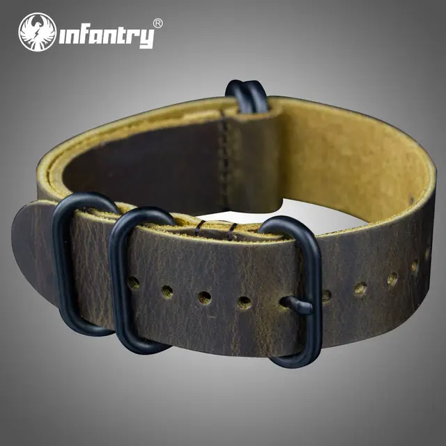 보병 22 미리메터 내구성 정품 가죽 손목 시계 높은 품질 부드러운 시계 벨트 교체 전기 도금 블랙 버클