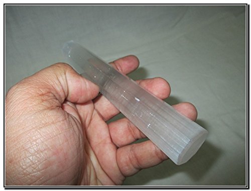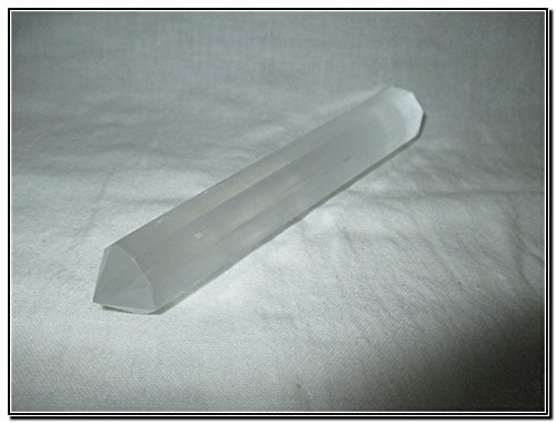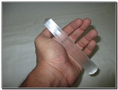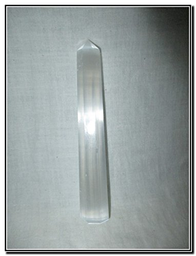 - Feature : Top Quality Faceted Selenite Wand Stick 5.5" long approx. Genuine Authentic Original; Pouch Available. Best Seller Worldwide. Kindly note that since all our products are handcrafted, there always exists slight deviations in size, shape, color of the products compared to image shown here. However, the Healing Qualities & Metaphysical Properties are EXCELLENT. / Selenite crystals are remarkably peaceful. They carry a very high vibration, and instill clarity of mind and a deep sense of inner peace. Selenite will assist you in opening your crown chakra and it can even assist you in contacting your Spiritual Guides and Angels. Another wonderful property of Selenite is that it has the power to cleanse and clear other crystals and negative energies. You will never need to cleanse or recharge your Selenite crystal, as you need to do with many metaphysical stones. Selenite is one of the more powerful healing stones for the new age and spiritual work. It is excellent for meditation, and ensures a peaceful environment when stones are placed around the home. Rubbing a smooth piece of Selenite will calm and lift your energy and may even help you enter into the realm of dreams, intuition, Spiritual Guides and Angels. If you are interested in increasing your psychic or telepathic abilities, place a piece of Selenite on your Third Eye Chakra (in between or slightly above your eyebrows). These are just a few of the many healing and metaphysical properties of Selenite. The insight and energy Selenite provides is valuable in any healing or spiritual practice. / Selenite Crystal Wand - These Selenite wands feel great to hold in your hand and are especially useful for removing entities or energetic parasites from the aura during Psychic Surgery. Selenite can evoke protection from the angelic realm and also dispels negative energy. Use Selenite in a grid around your home or in the corners of a room to create a safe and peaceful space. Selenite also removes energy blocks from physical and etheric bodies. Since ancient times, crystal wands have been used for healing by healers all over the world. Some believe that they were even used by crystal healers in Atlantis. Today, crystal wands are still a common tool used by healers around the world. Wands come in many different shapes and sizes, and also in many varieties of stone as well. Wands may be long or short, and the cylinder can be smooth or faceted. They can be pointed at one end and rounded at the other, or they can be rounded on both ends, or pointed at both ends. Some wands are wider at one end and tapered at the other, while others are not. Most wands are shaped and polished, but rough natural pointed crystals, such as quartz, can also be used as a healing wand. Healing wands gather and direct energy. The elongated, cylindrical shape of a wand enables the stone or crystal to direct its healing energy in a straight line, and the wand's point focuses the crystal's energy so that it can be used on specific areas of the body. / Selenite is a crystallized form of gypsum. The name Selenite comes from the Greek word for moon and means "moon glow," and these Selenite Wands do glow with a shimmery, pearl-like luster. The grain of the Selenite gives a lustrous shine that goes down the length of the wand to create a beautiful visual effect. The powerful vibration of Selenite opens the Crown and Higher Chakras and is excellent for meditation or spiritual work. Selenite calms and brings deep peace, and offers access to past and future lives. Selenite brings mental clarity, clearing confusion and revealing the bigger picture behind problems. A protective stone, Selenite shields a person or space from outside influences. Selenite is said to reverse the effects of "free radicals" to heal and repair on the cellular level. Associated with the spine and the skeletal system, Selenite also can be used to mitigate problems with Mercury fillings in dental work. Selenite is also good for breastfeeding. Selenite is a soft mineral, and should be kept dry. Selenite is a good stone for Taurus. Methods of Healing with a Crystal Wand: Crystal wands can be used in many different methods of healing. They can be used to heal the entire body or aura, or they can be used on a specific area of the body, or on a particular chakra. They can be used to scan the aura and the chakras to locate blockages, and then cleanse and heal them. Wands can also be used in massage healing. Massaging the body with a stone wand helps to release tension from the body, while at the same time the stone's healing energy is transferred to the body. Smooth, round wands that are rounded on at least one end are the best to use in massage healing as they will not scratch or cause other discomfort to the body. Pointed wands are good to use in reflexology, a healing method in which the stone's point is held at certain pressure points, mostly on the hands and feet, to heal ailments in particular areas of the body. / Choosing a Wand: Wands come in a wide variety of stones and crystals, so there are many different wands to choose from. Different stones have different healing energies and, therefore, have different effects on the body, aura, and chakras. As each gemstone has different healing properties, it is nice to have a variety of wands to use for a variety of different purposes. You might, therefore, wish to build a collection of wands made from a variety of gemstones. A clear quartz crystal wand is a very good stone for beginners to work with as it is an all-purpose healing stone, having the ability to heal any ailment on any area of the body or aura. This makes it a good stone to have for your first wand. Clear quartz is an excellent stone for gathering, storing, directing, and transmitting energy, but it can also transmute negative energy into positive healing energy. Its versatility and multiplicity of uses make it an essential wand for anyone to have. Clear quartz is also an amplifier of energy, and 