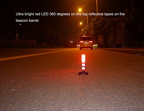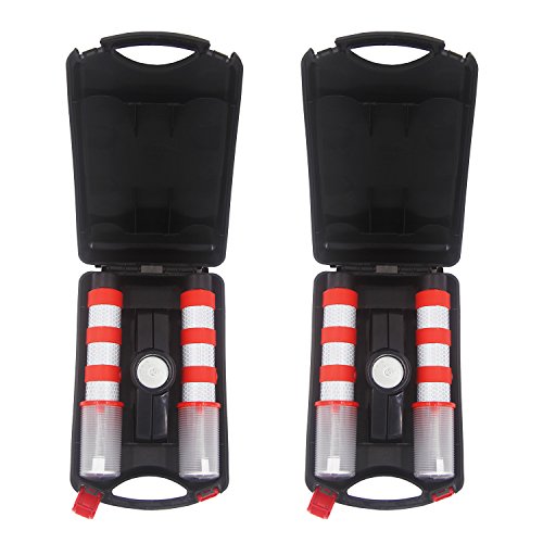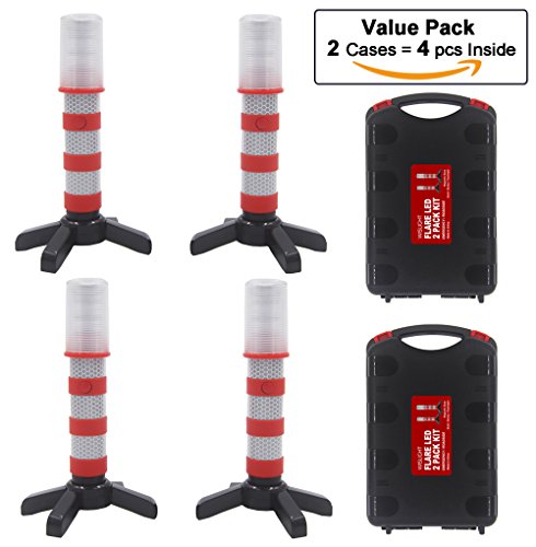 WISLIGHT LED Emergency Roadside Flashing Flares Safety Strobe Light - Road Warning Beacon , Magnetic Base, Detachable Stand, Storage Case (2 Cases = 4 PCS, Battery Not Included)