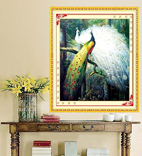 Lsinyan Peacock Lovers Cross Stitch Kit World Famous Paintings Diy Needlework Embroidery Set Animals Cross Stitching Wall Home Decor (silk thread)