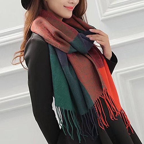 Women's square check plaid blanket scarf shawl for winter wear - acrylic like soft cashmere