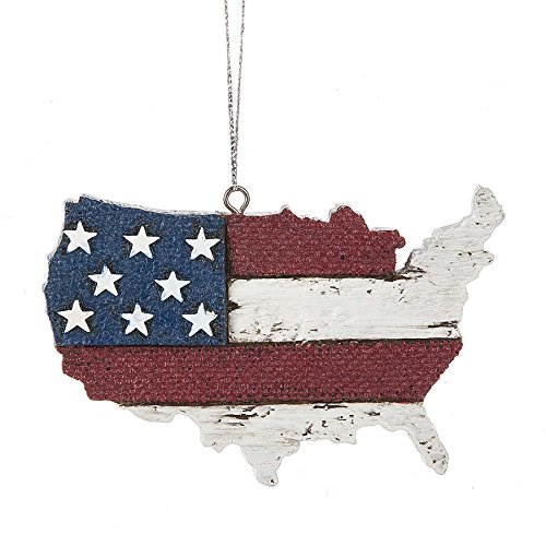 Old Glory USA Map Americana 4.5 x 3 Inch Resin Christmas Ornament Figurine