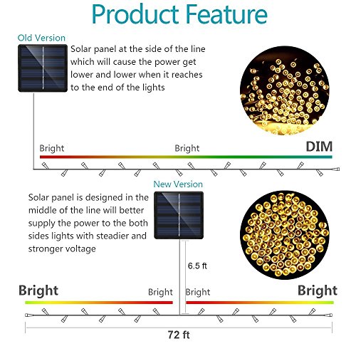 - The Solar Lights Outdoor Total Length: 22m/72ft; Rope Light beads quantity: 200 LED Lights; Larger capacity of 1800mAH battery ensure over 8 hrs steady-on mode or flash mode in night.