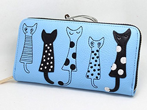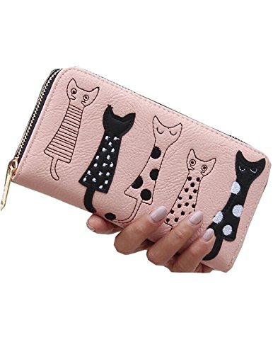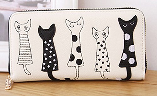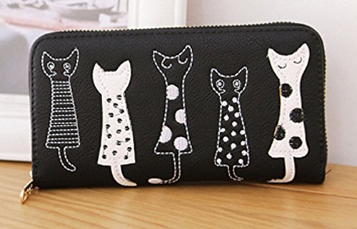 -. Title : Zipper Long Women's Wallet Cute Cartoon Embroidery Modern Cat PU Leather Purse