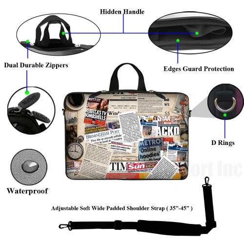 -. Binding : Electronics -. Brand : Meffort Inc -. EAN : 0765573880755 -. Feature : Hydrophobic (water resistance) neoprene material, w. reinforced dual zipper to secure your device / High quality printing on both side of the bag with laptop edge guard / Fits laptop size up to 15.6", Fits laptop dimension up to: 15.2" (385mm) x 11.5" (290mm) / Item can be use as shoulder bag w. strap in use or can be use as carrying bag (Hidden Handle) or Sleeve / Note: zipper will not close fully when hidden handle is in use, but it doesn't affect functionality -. Label : Meffort Inc -. Manufacturer : Meffort Inc -. Model : GStrap2804 -. MPN : GStrap2520 -. PartNumber : GStrap2520 -. ProductGroup : PC Accessory -. ProductTypeName : COMPUTER_COMPONENT -. Publisher : Meffort Inc -. Studio : Meffort Inc -. Title : Meffort Inc 15 15.6 inch Neoprene Laptop Sleeve Bag Carrying Case with Hidden Handle and Adjustable Shoulder Strap - Newspaper Clip Design -. UPC : 765573880755