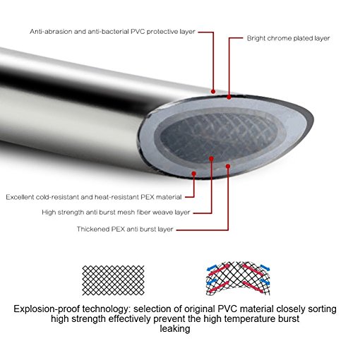 The shower hose is adopt 5-layer structure with 3-layer PVC and produced by multi-channel complex processing technology that enhances the anti-skid anti-explosive performance.