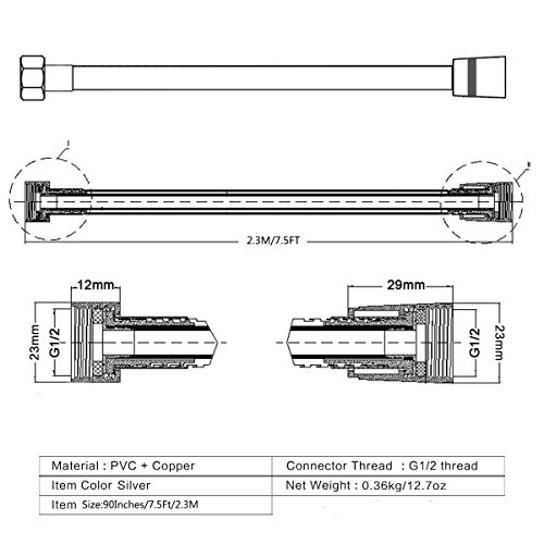 90 Inches Shower Hose(7.5 Ft, 2.3 Meters)---This shower hose is long enough to wash your hair while sitting in a bathtub, to use in cleaning and rinsing the tub/shower combination or your pets.