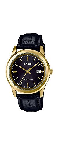 Brand, Seller, or Collection Name:Casio Part Number:MTP-VS01GL-1A2 Item Shape:Round Display Type:Analog Case diameter:38 millimeters Band Material:Leather Band width:18 millimeters Band Color:Black Dial color:Black Calendar:Date Special features:n/a Item weight:8.16 Ounces Movement:quartz (Solar)