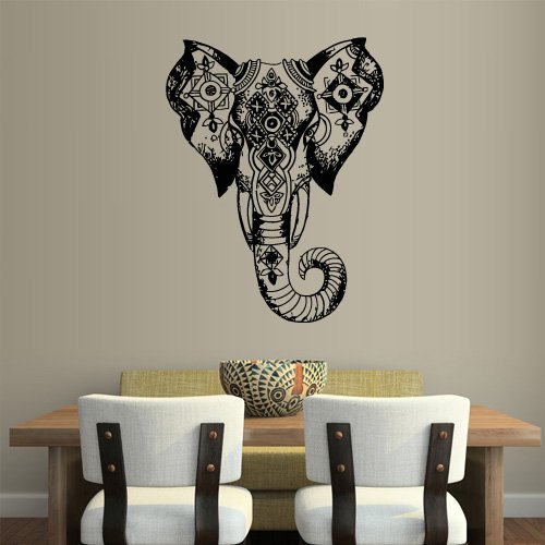 -. Title : Wall Vinyl Sticker Decals Decor Art Bedroom Design Mural Ganesh Om Elephant Tattoo Head Mandala Tribal (Z2440)