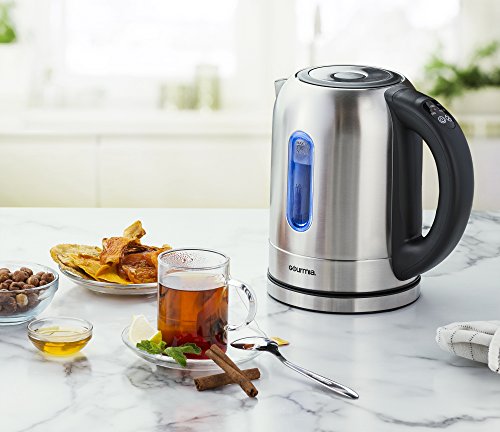 Gourmia's Electric Kettle With LED Illumination lets you enjoy more than just tea! With this versatile appliance, boil tea at just the right warmth, using the convenient programmable temperature functions. Watch as the LED lights change color according to the temperature you select for your water!Control Panel Includes: