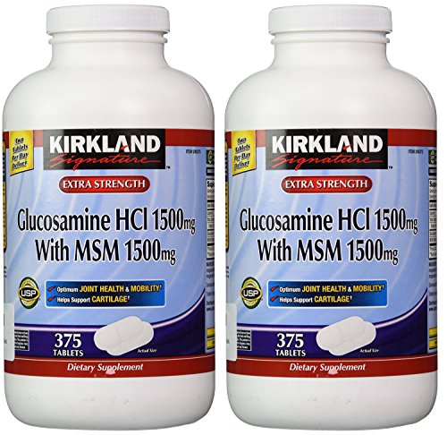 -. Binding : Health and Beauty -. Feature : MSM is a bioavailable sulfur. / Sulfur is a necessary. Component that works in conjunction with Glucosamine to provide the building blocks of collagen. / An important component of healthy joints and connective tissue. -. IsAdultProduct : 0 -. Label : Kirkland Signature -. Manufacturer : Kirkland Signature -. ProductGroup : Health and Beauty -. ProductTypeName : HEALTH_PERSONAL_CARE -. Publisher : Kirkland Signature -. Studio : Kirkland Signature -. Title : Kirkland vjaui, Extra Strength Glucosamine HCI with MSM 375 Count (Pack of 2)