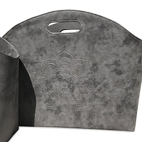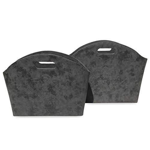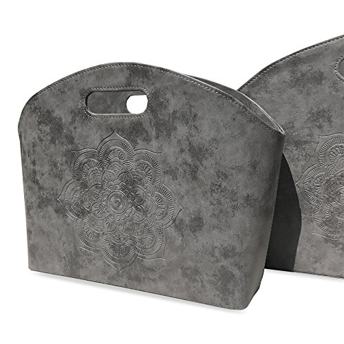 - Sold as a set of 2, they are designed with elegant out out handles, lined with soft polyester and feature beautifully tooled mandala flowers on the soft gray faux leather exteriors.