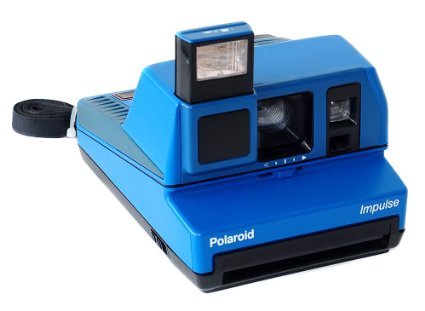 This is a collectible Polaroid Impulse AF Camera in Jade Green. It has a built in flash and comes with a matching soft case. This camera uses Polaroid type 600 instant film.