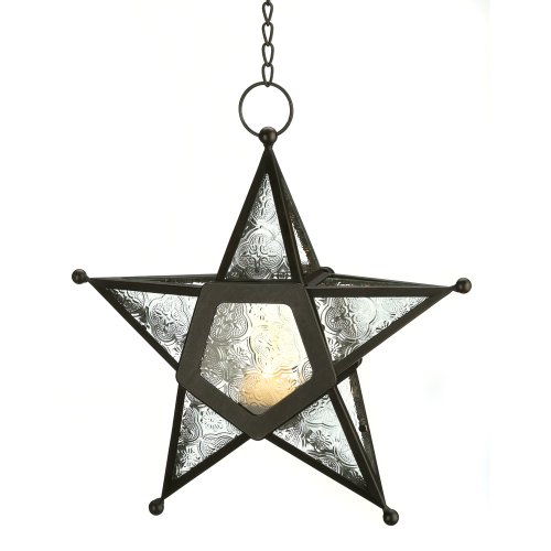Gifts & Decor Glass Hanging Star Candle Lantern, Clear