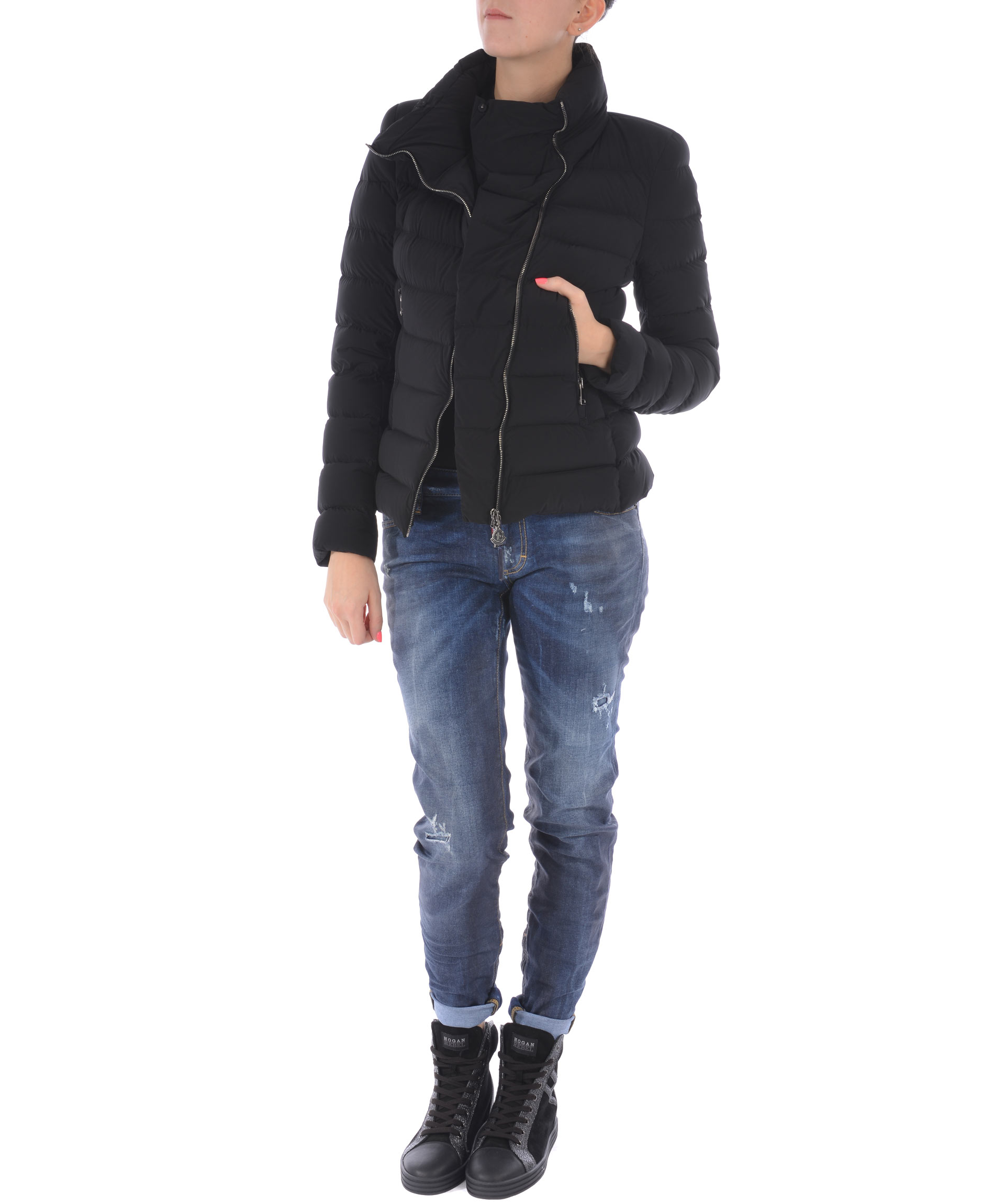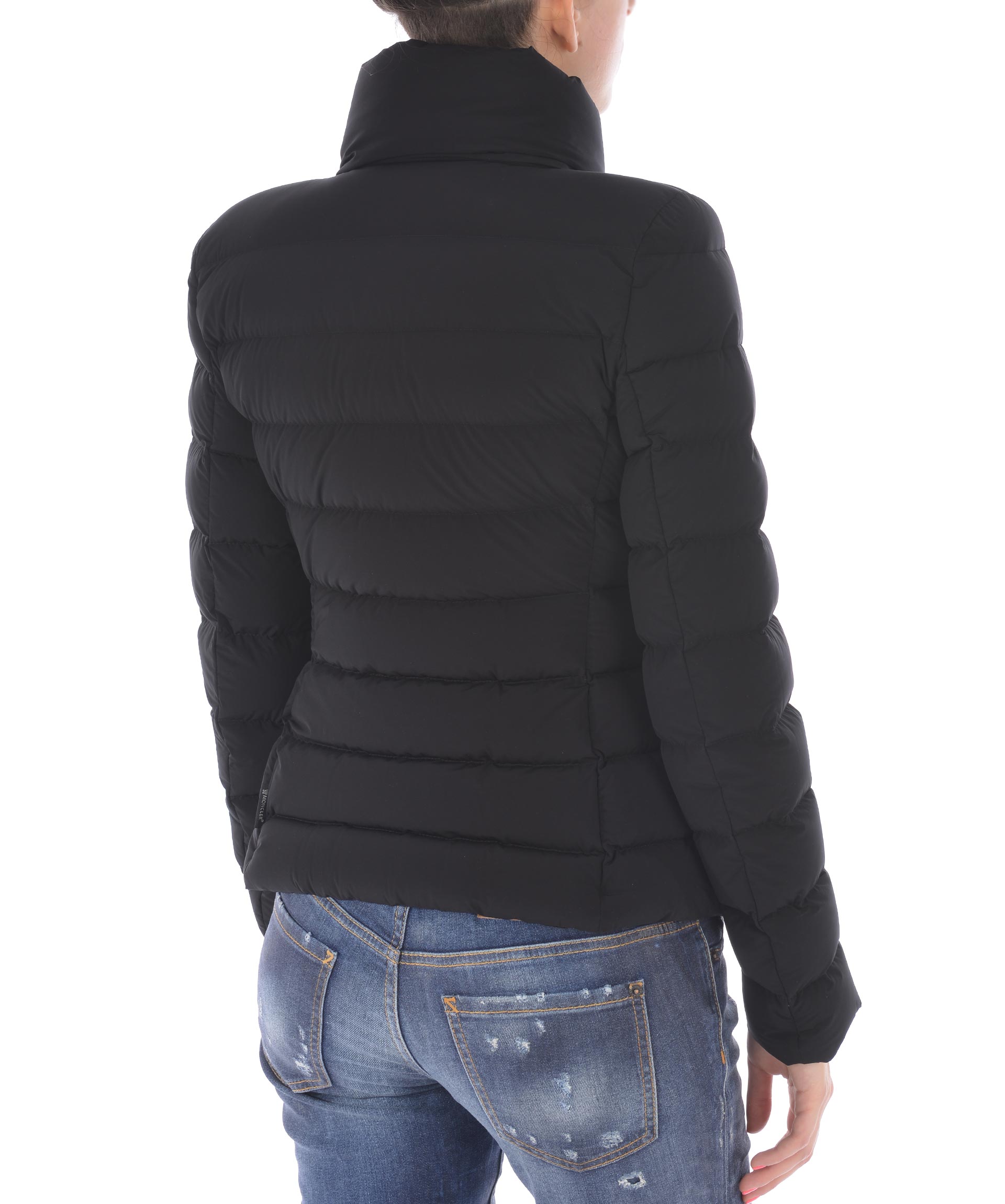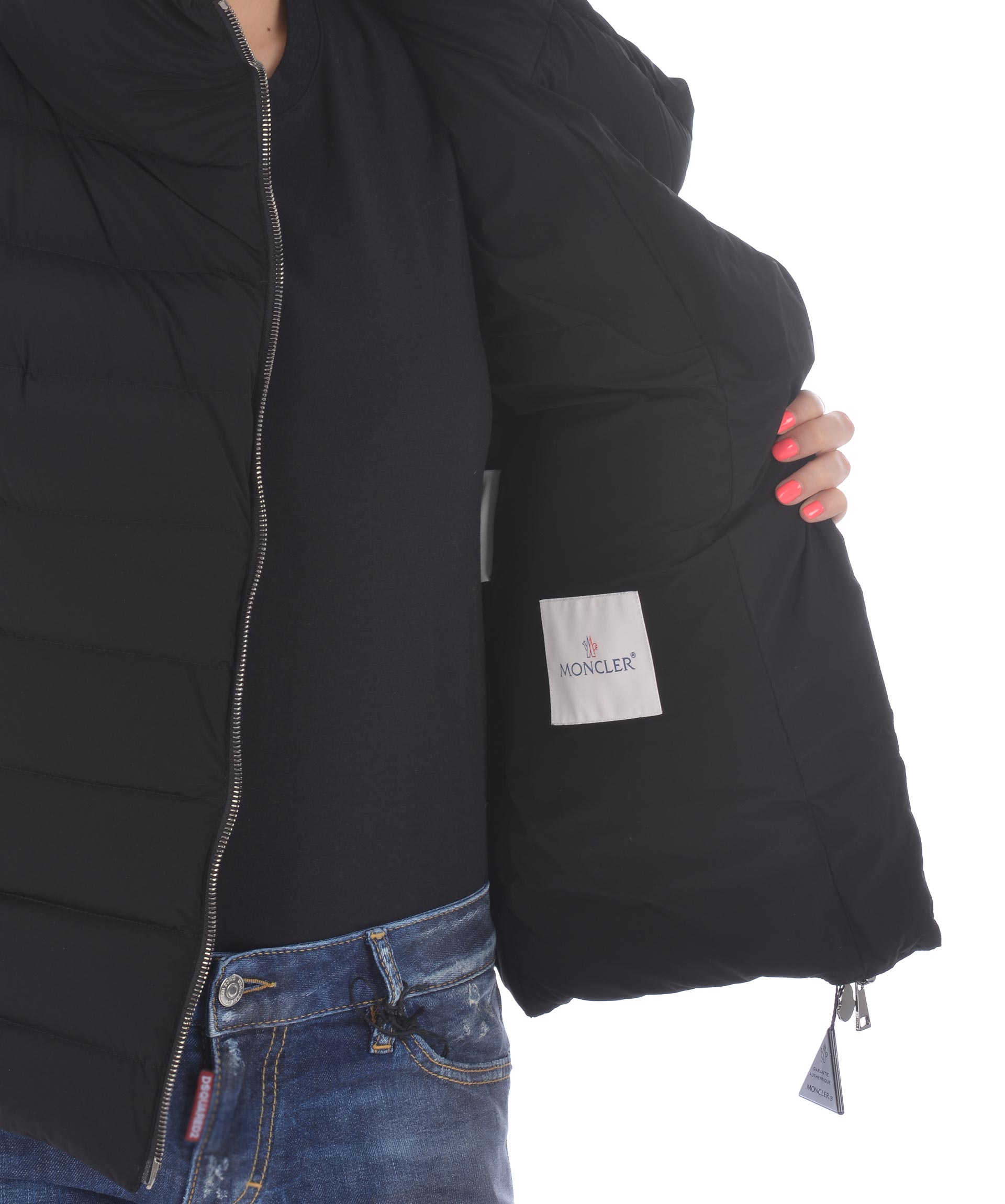 Giubbino Moncler in nylon opaco elasticizzato Nero. Imbottito con piume d'oca. Collo alto imbottito. Chiusura frontale con zip doppio cursore. Tasche frontali con zip. Misura in foto II 100% poliammide Imbottitura: 90% piumino, 10% piuma