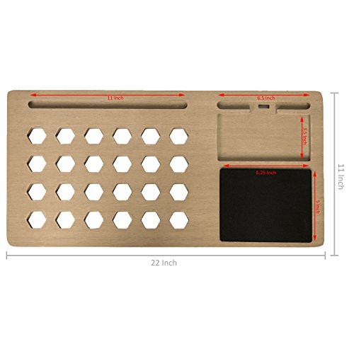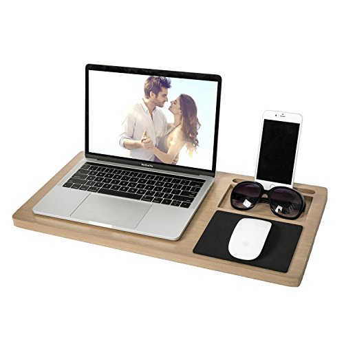 -. Feature : A clever lapdesk with a lightweight design and room for electronics. / Features cooling holes for use with keeping laptops running at optimum efficiency. / Store your literature, cell phones, and tablets with ease. / **Official MyGift® product.** Laptop and accessories not included. / Approximate Dimensions (in inches): Overall - 22 W X 11 H X .5 D; Cell phone slot - 6 W; Tablet slot - 11 W.