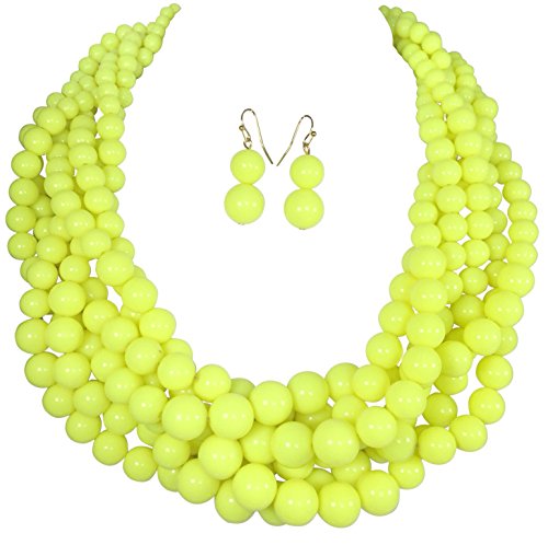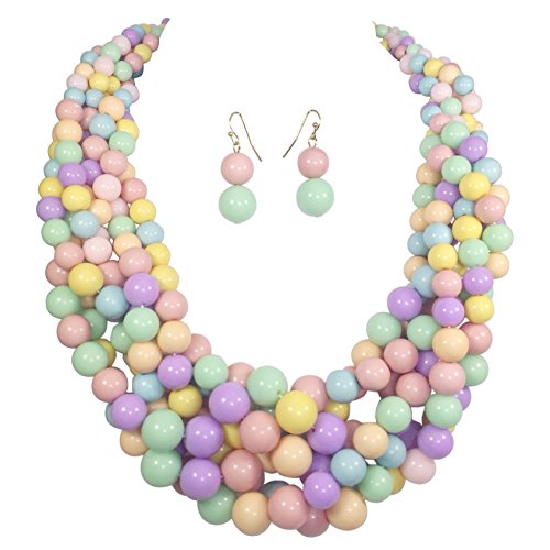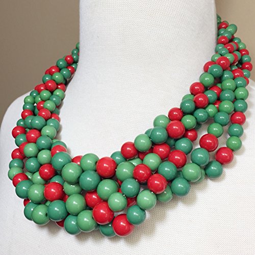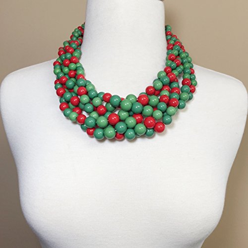 Braided Multi Strand Beaded Statement Necklace & Earrings Set (Red & Green)