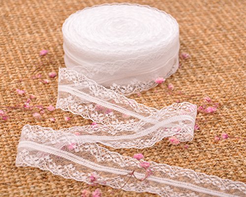 Milesky White Lace Ribbon 1.5 Inch by 20 Yards LRB01