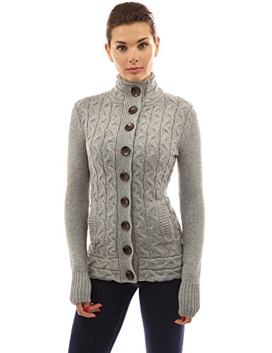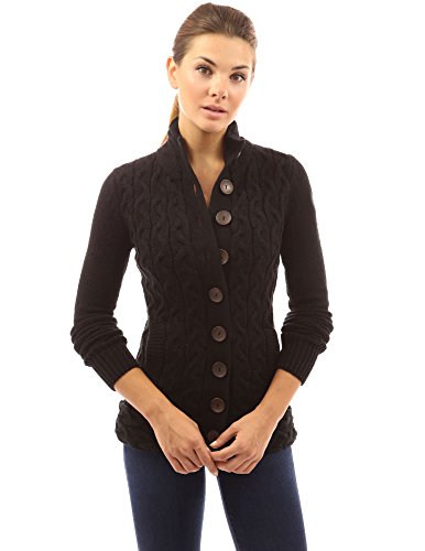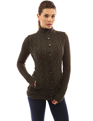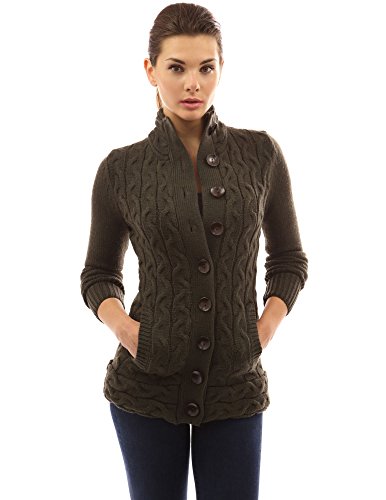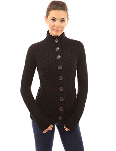 Product DescriptionPattyBoutik Mock Neck Long Sleeve Button Down Cable Knit Cardigan. Model in pictures is 5 feet 8 inches (173cm) tall wearing size S.0