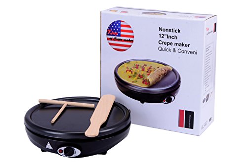 Electric Crepe Maker Griddle, 12 inch Nonstick easy to clean, Use also for Cooking Eggs, bacon and other breakfast favorites