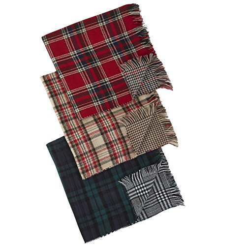 Acrylic knit rectangular blanket scarf is reversible with coordinating patterns on both sides. The Scarf Size: 22" x 74". Choose from colors: tan, red or green. Each sold separately. Makes a perfect gift. Brand : Mud Pie Item model num : 8603186 MPN(PartNumber) : 8603186GR EAN : 0718540303252 Product Dimensions(LxWxH) :