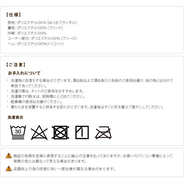 ●表地:ポリエステル100%(はっ水フランネル)