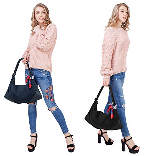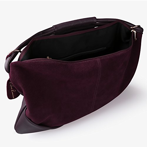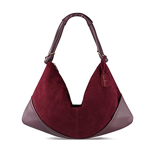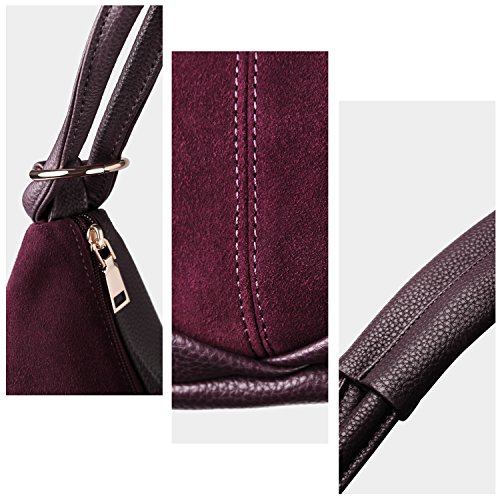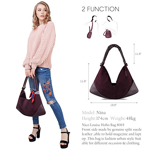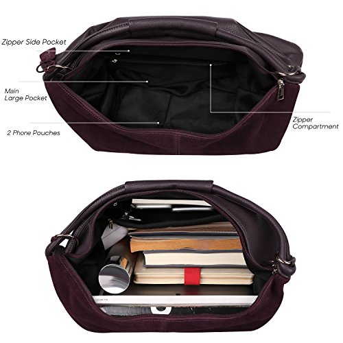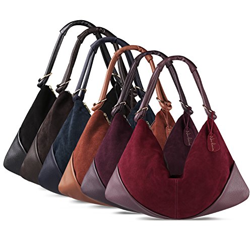BEST MATERIAL:It made by Genuine Split Suede Leather and the Bottom made by PU Leather * LARGE CAPACITY:19" x 11.8" x 3.93" (WxHxD) 1.76(lb) ,It Large Capacity to carry your Daily Essential like long wallet ,Ipad ,Laptop,Magazine ,Cosmetics, clothing etc... * DUMPLING STYTLE: it is in fine workmanship and neat car suture, which is strong and durable by great concept of design -- special dumpling style which will bring you a feeling of fashion * MULTI-STRUCTURE AVAILABLE:1 Main Compartment,1 Zipper Pocket , 2 Small Open Pocket for Your Phone or Key.also 1 outer zipper pocket in back * MATCH DIFFERENT STYLES:This Purse is fashion urban style,it can use for Handbag ,Shoulder Bag ,Crossbody Bag,Traveling bag and Suitable for formal & informal occassions like Office,Party,Shopping and Traveling.Match different styles clothingFeature