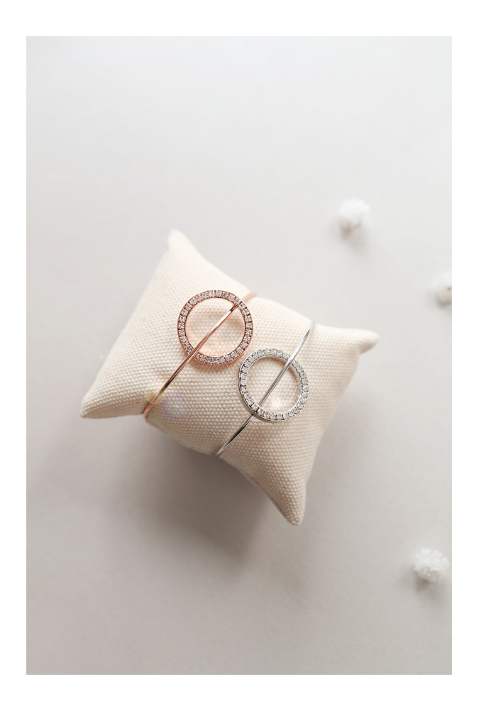심플하고 모던한 감각의 라운드 팬던트가 센시티브한 느낌을 주는 새턴 큐빅 포인트 팔찌