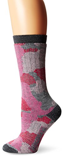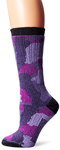 Women's merino wool camo is a heavyweight outdoor boot sock fashioned in stylishly colored camouflage. It is knit with 51 percent fine gauge merino wool that adds warmth and luxurioUS comfort. This sock is fully cUShioned with foot hugging fit and comfort. Merino wool fibers keep feet dryer than other natural fibers. Its cortical cells retain and disperse moisture and releases dirt particles with a flexing action on the outer layer. 95 percent of the merino wool USed by wigwam is grown in the USA. It is soft, resists odor, insulates, and does not itch. Wigwam is a 110 year old fourth generation family owned USA manufacturer of socks. This sock carries a 2-year performance guaranteeFeature