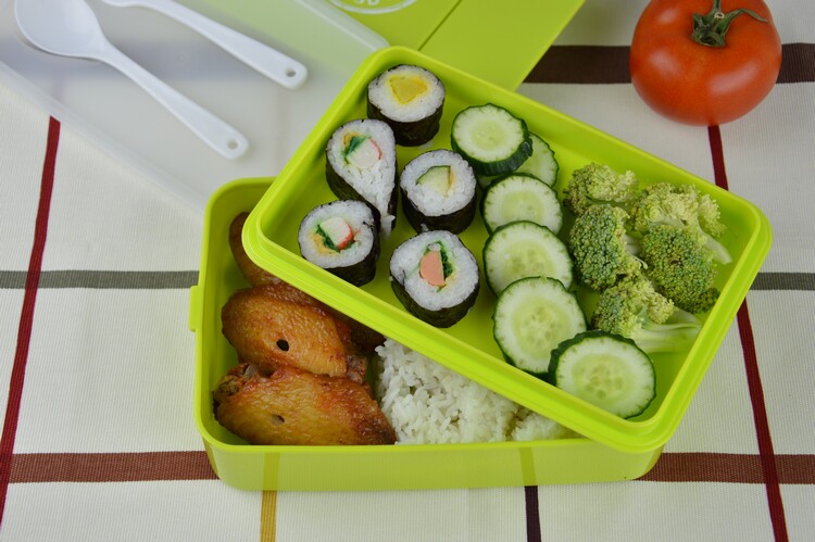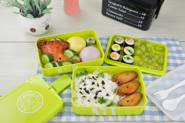 第一层格子较浅,只能装煎蛋、蔬菜、切片水果或小寿司这类食物哦