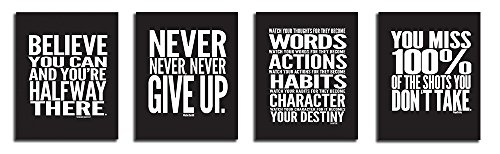 -. Feature : ✓ MOTIVATIONAL & INSPIRATIONAL WALL DECALS - Our motivational quote posters can be used at any setting for inspiration, motivation, aspiration, goal setting, daily progress, etc. Great additonal for any room, office, work, dorm room, college, hotel, and apartment. / ✓ SET OF 4 MATTE LAMINATED DECAL STICKERS - Bold, glare-free, black and white typography art style. Comes with 4 inspirational wall decals all being 10" x 8" inches, simply peel and stick the wall decals and smooth out any air bubbles with a credit card or flat object. Not Framed & No Frame included, these are 4 sets of wall decor stickers. / ✓ DURABLE HIGH QUALITY STRONG VINYL STICKER - We use the highest grade vinyl and add a finishing coat of matte lamination to create a durable and high end finish. Made for sticking to surfaces without leaving sticky residue when removed. / ✓ MADE IN USA - Evolve Skins is proudly designed and printed in USA. / ✓ LIFETIME GUARANTEE - At Evolve Skins, we are dedicated to your satisfaction. That is why we can offer a lifetime guarantee. If you are ever not satisfied with the performance of your product send it back with no questions asked!