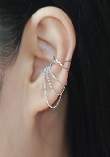 -. Title : 20gauge 3 Chains Cross X ear cuff ,No Piercing Cartilage Ear Cuff, Ear Jacket, Ear Wrap / Please select an option.