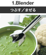 ![]() | スリムボディのブレンダーなので、少量の素材を、素早く「つぶしながらまぜる」ことができる。調理中のお鍋の中などで直接調理して、ポタージュや離乳食も出来たてをそのまま食卓へどうぞ |