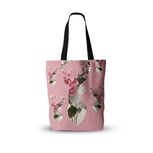 KESS InHouse Suzanne Carter "Floral Deer" Pink White Everything Tote Bag, 18" x 18", Multicolor