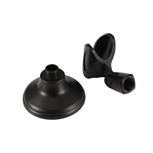 -. Feature : The Mic clip is 180-degree adjustable, can be set to suitable angles as you need / Top can be removed, then the base is just a perfect showing stand / Scratch resistant, powder coated black finish, solid die cast metal round base / The heavy base and high elasticity mic clip ensures ultra solid and stable positioning / Suitable for holding the microphone on the desk for meetings, lectures, speaking, podcasts, screencasts or video chats,MSN/Skype