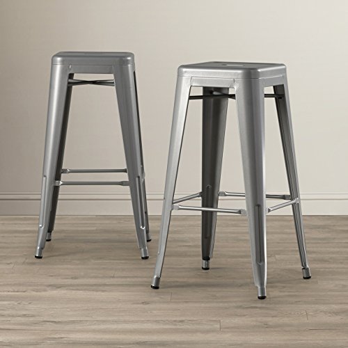 -. Title : Belleze (Set of 2) Backless Metal Indoor/Outdoor Barstool w/Square Seat, 30"-inch