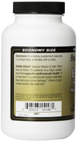 Natural vitamin E with 100% natural mixed tocopherols. A major antioxidant. Supports cardiovascular health. Supports cardiovascular health. It is important in protecting the body's cells from free radical or oxidative damage.